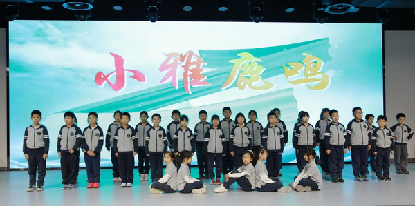 二年级3班的同学们带来《鹿鸣》,用饱含深情的朗诵重现“呦呦鹿鸣,食野之苹”的经典场景。孩子们的演绎从容大气,将古人宴饮宾客时的融融暖意与风雅气度展现得惟妙惟肖。
