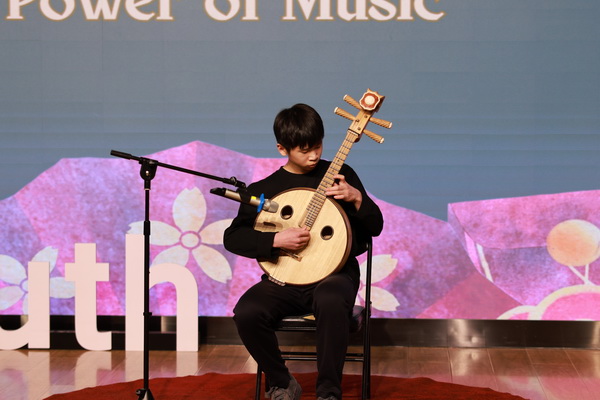 演讲间隙,Felicia悠扬的古筝、Prince灵动的钢琴与Gavin深情的中阮演奏穿插其中。学生们用指尖流淌的音符,搭建起中西文化交流的桥梁,让现场观众在激荡的思想火花之外,也享受到了一场听觉的盛宴。