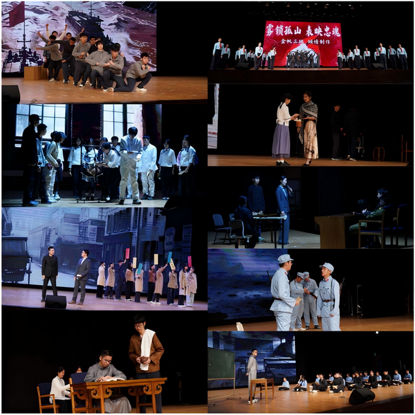 在戏剧中,我们重回正面战场,看见"锋刃出鞘、血染山河"的壮烈,感受到"一寸山河一寸血"的滚烫赤诚;在戏剧中,我们潜入敌后和地下战场,听见"暗战无声、信仰不灭"的心跳,触摸到"于无声处听惊雷"的坚定执着;在戏剧中,我们走进各界支援的洪流,见证"众志成城、共赴国难"的担当,体会到"岂曰无衣,与子同袍"的民族深情;在戏剧中,我们驻足文脉传承的长廊,铭记"铭记伤痛、守护根魂"的使命,领悟到"斯文在兹,生生不息"的坚韧力量。同学们在戏剧中演绎了烽火岁月的青春回响,展现出中华儿女勠力同心、共赴国难的身影;感受到火光跳动,号声嘹亮,耳畔响起先辈们穿越时空、振聋发聩的呐喊。