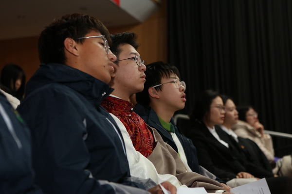 本次观摩实现了集团内线上观摩的广泛覆盖。在望京校区会场,来自八十中教育集团望京、南、北、东四个核心校区,以及嘉源分校、温榆河分校、望京实验学校、陈经纶分校等成员校的102名师生代表齐聚一堂。这支队伍构成多元,涵盖了校模拟政协社团成员、小初高各学段学生、内高班藏族学生,以及教师党员、学生团员和来自集团思政大学科部的青年教师。他们与朝阳区观摩领队、区教委基教二科副科长石岩老师共同参与了集体线上观摩。与此同时,区内18所成员校与远在河北的雄安分校师生也坚持同步线上观摩,确保每一次学习都能跨越空间的阻隔,实现思想的同频共振。