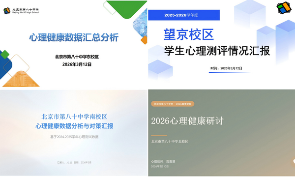心理健康教育团队张喆、刘嘉、高嘉慧和李进四位老师,依托近三年学生心理测评数据,精准锁定共性问题:同伴交往是各学段主要困扰;睡眠不足、学习压力大、网络成瘾倾向、家庭养育方式等为关键风险因素;毕业年级情绪问题突出。各校区均构建了“筛查—评估—干预—转介”闭环体系,建立了“一生一策”心理档案,形成了“课程引领、数据驱动、精准施策、家校协同”的心理健康提升体系。