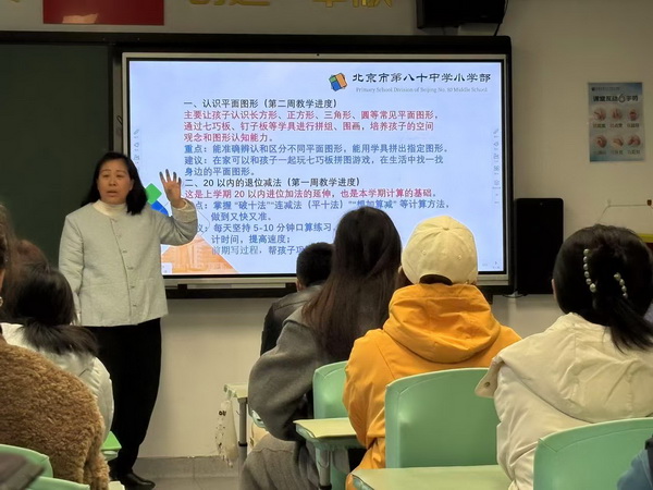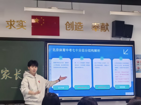 体育刘老师和魏老师详细解读了北京体育中考和四、六年级体测相关政策,明确二年级是学生运动习惯养成、体质基础夯实的关键期,介绍了学校每日2小时体育活动、课间15分钟锻炼、班级体育联赛等保障举措,提出了家庭锻炼、饮食管理、运动兴趣培养的实操建议。