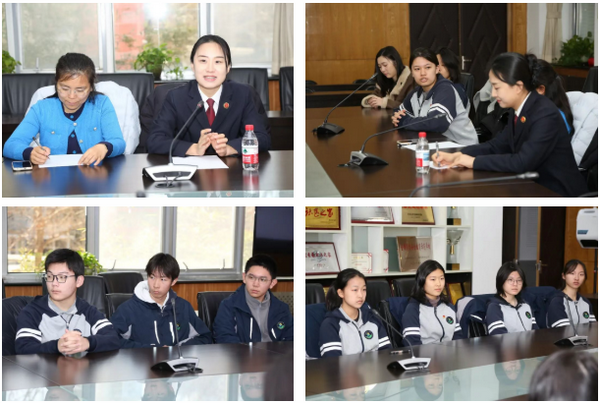 随后,党委书记喻江、教学副校长姚亭秀、团委书记王悦、副书记刘慰,以及青年党校、模拟政协、晨光文学社、坤舆社等学生代表与马艳君主任开展座谈交流会。同学们围绕职业理想、法律法规、自我保护、青少年成长等方面踊跃提问。
