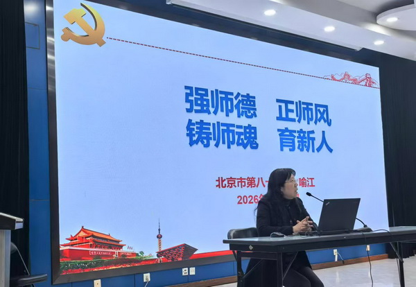 3月24日下午,北京市第八十中学党委书记喻江同志在望京校区报告厅,为全体教职员工开展师德师风专题培训。本次培训以“强师德、正师风、铸师魂、育新人”为核心主题,围绕内涵解读、政策学习、案例引领、问题提升四个维度展开,引导全体教职员工坚守教育初心、规范职业行为,筑牢育人根基。