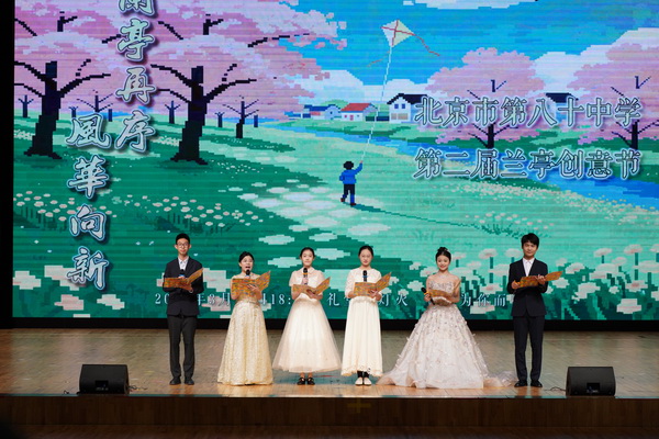 2026年3月20日晚,恰逢春分时节,北京市第八十中学第二届“兰亭创意节”盛大启幕。本次活动以“兰亭聚少年,科学映初心”为主题,由贯通班学生自主策划、自导自演,将传统文化与青春创意深度融合,在春日校园里搭建起一座承载文化之雅、思维之趣的舞台。活动旨在以成长型思维为翼,鼓励学子在多元卓越的探索中,于艺术、科学与家国情怀的交织里,书写属于新时代青年的创意华章,彰显八十中人“勤奋、求实、创造、奉献”的精神底色。八十中学党委喻江书记、廖克伟副校长、闫凌加副校长、拔尖创新人才中心李继良主任、教育处刘颖男主任,贯通班初三、高一年级及求真学堂师生和家长共同参与了本次活动。
