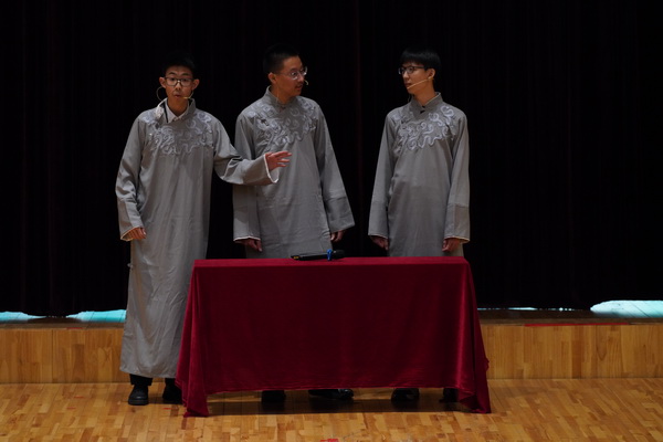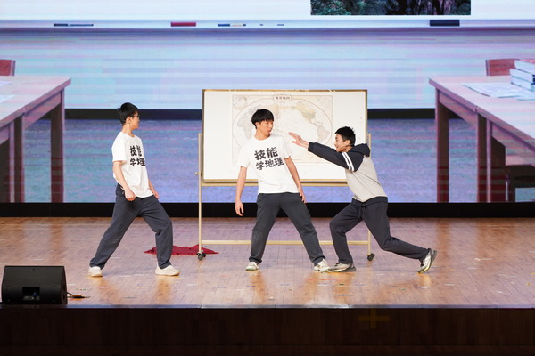 贯通4班同学们带来的小品讲述了仕然同学在课外加入“技能学地理”社团,并在其中与教练、同学们以幽默的方式学习地理知识的故事。它传递用科学思维化解荒诞、在理性中拥抱生活的理念。它让学子在笑声中学会清醒面对现实,将科学精神融入日常,展现创意节“思维之趣”的核心。