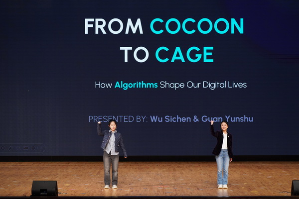 贯通3班思辰、云舒同学直面科技时代的困境,剖析信息茧房与隐私泄露的危害,分享如何在算法洪流中守住独立思考能力,在数字世界里保护隐私与自由。她们唤醒青年对数字生活的警惕,守护精神的独立与自由,传递“不被算法定义,坚守自我认知”的成长型思维内核。