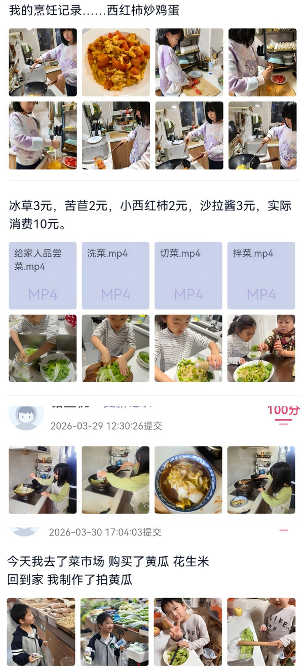 回家后,孩子们在家长的指导下制作营养健康餐。从洗菜切菜到调味烹饪,每一个步骤都认真记录,并上传“八十e家”研究性学习平台。最后,还要进行成本核算(食材、调味品、水电等),让学生完整经历从“估算”到“精算”,用数学解决生活问题的全过程,在真实情境中体悟数学的实用价值与生活的温度。
