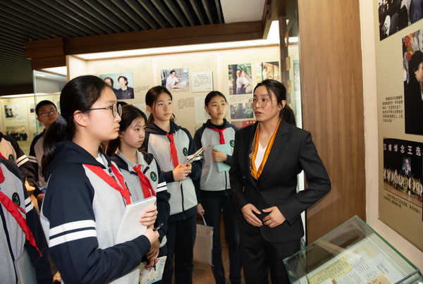 接着师生们依次参观陈列室四层“生平事迹厅”和三层“创新历程厅”。其中,四层展厅以时间为轴,全景式呈现了王选院士从青年求学、选择冷门专业,到投身“748工程”、带领团队攻坚克难,再到功成名就后甘为人梯、提携后学的人生历程。