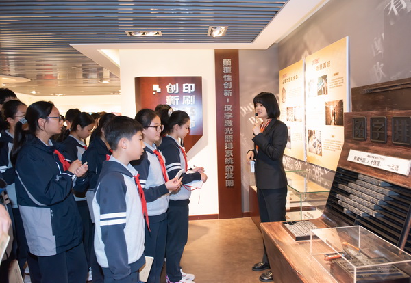 在核心技术展区,讲解员重点介绍了王选院士独创的字形信息压缩与高速复原技术。正是这一突破性算法,解决了汉字字数多、字形复杂的信息处理难题,使中国印刷技术跨越了西方用四十年才走完的技术代际。同学们认真聆听、仔细记录,深刻体会到“顶天”就是要掌握核心技术,“立地”就是要经得起市场检验。