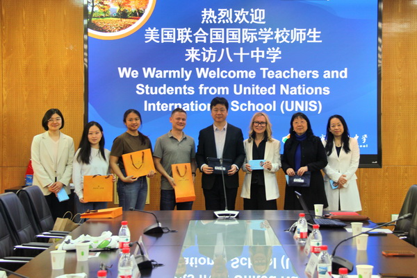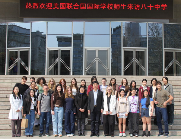 阳春三月,春意渐浓,生机盎然的八十校园迎来了一群来自远方的客人——美国联合国国际学校(UNIS)的师生跨越太平洋来到北京,与八十师生开启了一场充满友谊与温暖的跨文化交流之旅。