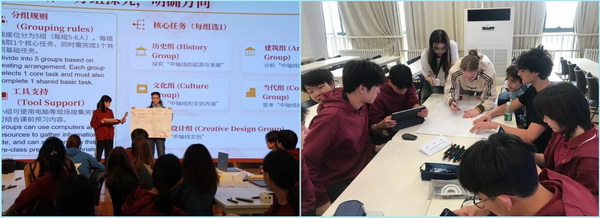 在PRP未来学者课上,两校学生混编成组,从历史、文化、建筑等五个维度对北京中轴线展开自主探索。查阅资料、讨论分工、设计海报、登台展示——合作本身就是跨文化学习的最好例证。