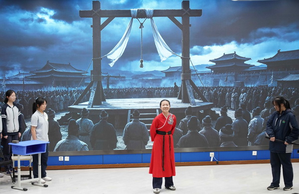 品悲悯情怀,悟人性良知。在《窦娥冤》的演绎过程中,同学们感受到了社会与生命的双重悲剧。窦娥在临刑前发下三桩誓愿——血溅白练、六月飞雪、大旱三年,桩桩应验,天地为之动容,观众为之震撼。这既是对黑暗社会的血泪控诉,也是对生命尊严的极致呼唤。悲悯不是廉价的同情,而是感同身受后的反思。当我们为窦娥落泪时,其实也在为受压的无辜者而悲悯,愿这份悲悯情怀化作我们内心的明灯,照亮良知,温暖人间。
