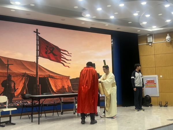 史笔千秋,落笔成韵;舞台方寸,演绎人生。同学们用细腻的表演让历史人物走出泛黄的史册,在舞台上谋划、挣扎、抉择:刘邦的隐忍、樊哙的无畏、张良的忠勇……同学们将史书中寥寥数笔的记载,化作有血有肉的表演,每一个精心设计的细节都引得台下掌声与唏嘘交织。演出落幕,但历史的烟云却仍在同学们的心中翻涌,那份对人生选择的思索,伴着经久不息的掌声,久久回荡在剧场之中。