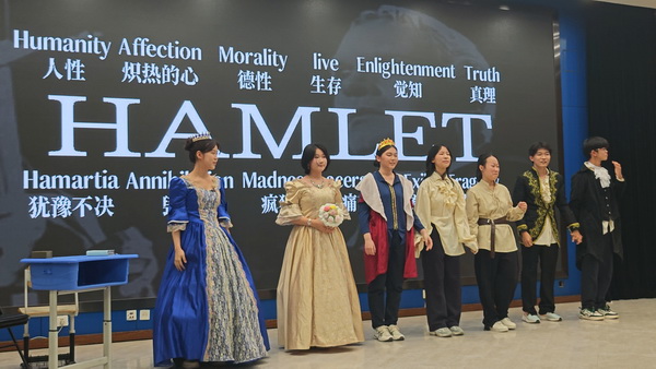 窦娥的善良、鲁侍萍的真情、哈姆雷特的犹豫、项羽的豪迈刚愎、成名的迂讷……一篇篇经典作品经过同学们细心打磨,在舞台上焕发出震撼人心的艺术光彩。从台词的准确到动作的传神,从布景的巧妙到灯光的渲染,每一幕都凝聚着学生对文学的理解与敬意。当促织的化形激起阵阵叹息、当哈姆雷特的独白响彻剧场——那些原本停留在课本中的人物,真正走进了每一位观众心里。学生们尽心将人性百态、时代沧桑展现在舞台上,让观众在观影的过程中感受悲剧作品震撼人心的力量,激发起心中对良知的坚守。